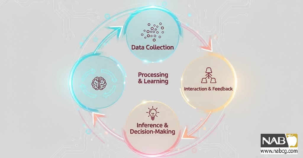 تعامل و بازخورد (Interaction & Feedback): خروجی مدل (مانند یک پیشنهاد، یک تشخیص یا یک عمل) به کاربر ارائه میشود. سپس، واکنش کاربر (مانند کلیک کردن روی پیشنهاد، نادیده گرفتن آن یا تصحیح یک تشخیص اشتباه) به عنوان دادهای جدید ثبت شده و برای بهبود و بهروزرسانی مدل در آینده استفاده میشود. این چرخه باعث میشود سیستم به مرور زمان هوشمندتر و شخصیتر شود.
