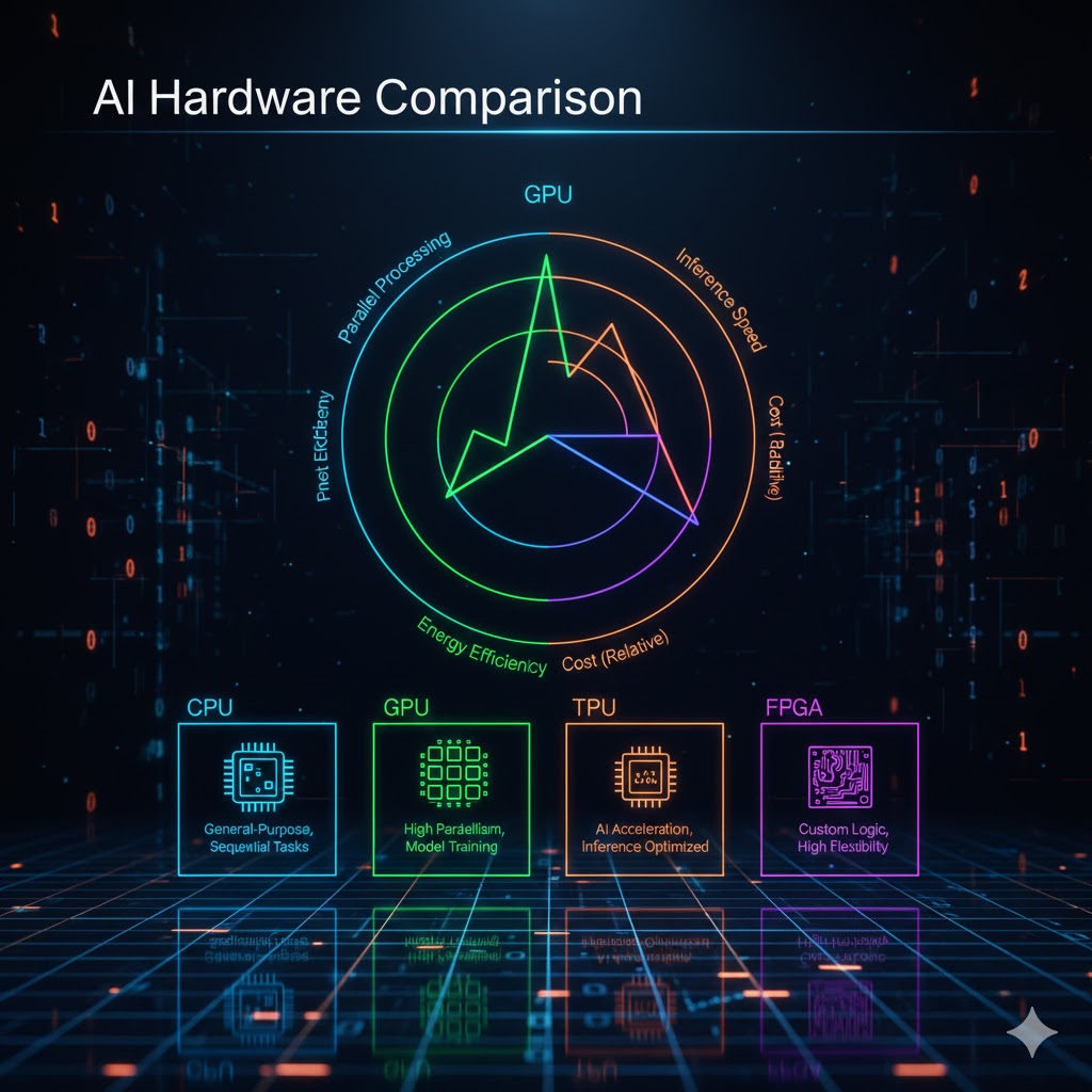 مدلهای هوش مصنوعی—بهویژه شبکههای عصبی و مدلهای بزرگ—به حجم زیادی از محاسبات نیاز دارند.وجود GPU ، TPU و پردازندههای قدرتمند باعث میشود: