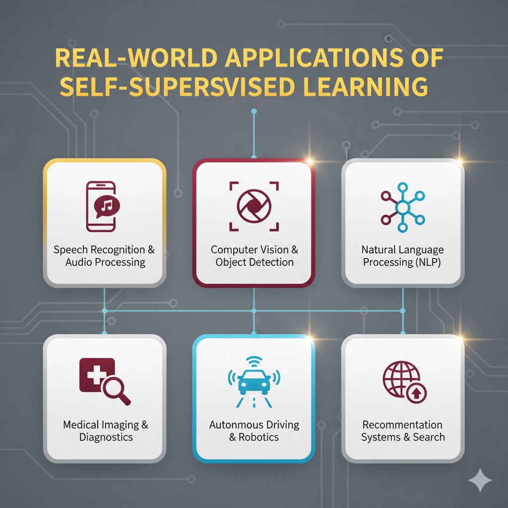 یادگیری خود-نظارتی (SSL) فقط یک تئوری آزمایشگاهی نیست؛ این تکنولوژی همین حالا هم در حال تغییر دنیای اطراف ماست. بیایید ببینیم کجاها حضور دارد: