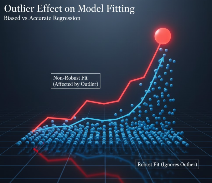 مدلی که برای توضیح نقاط غیرعادی «خود را کج‌و‌معوج» کرده است، معمولاً روی داده‌های آینده عملکرد خوبی ندارد؛ پیش‌بینی‌ها ناپایدار و غیرقابل اعتماد می‌شوند.