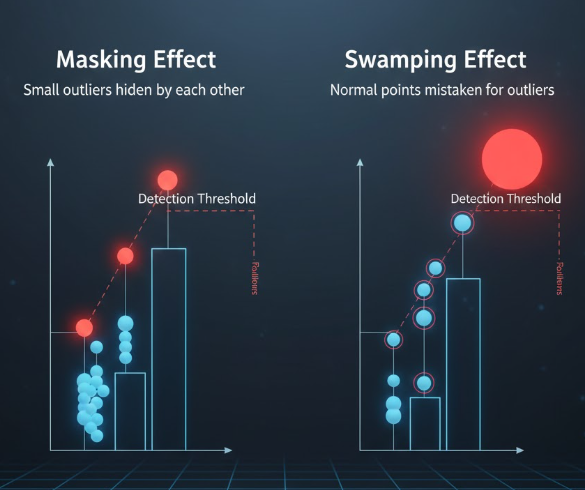 چند داده‌ی پرت نزدیک به هم می‌توانند یکدیگر را «پنهان» کنند و الگوریتم نتواند آن‌ها را به‌عنوان ناهنجاری تشخیص دهد .