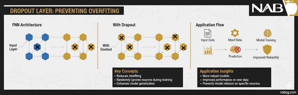 لایه Dropout در واقع یک لایه پردازشی نیست، بلکه یک تکنیک منظمسازی (Regularization) برای جلوگیری از یک مشکل بزرگ به نام بیشبرازش است.