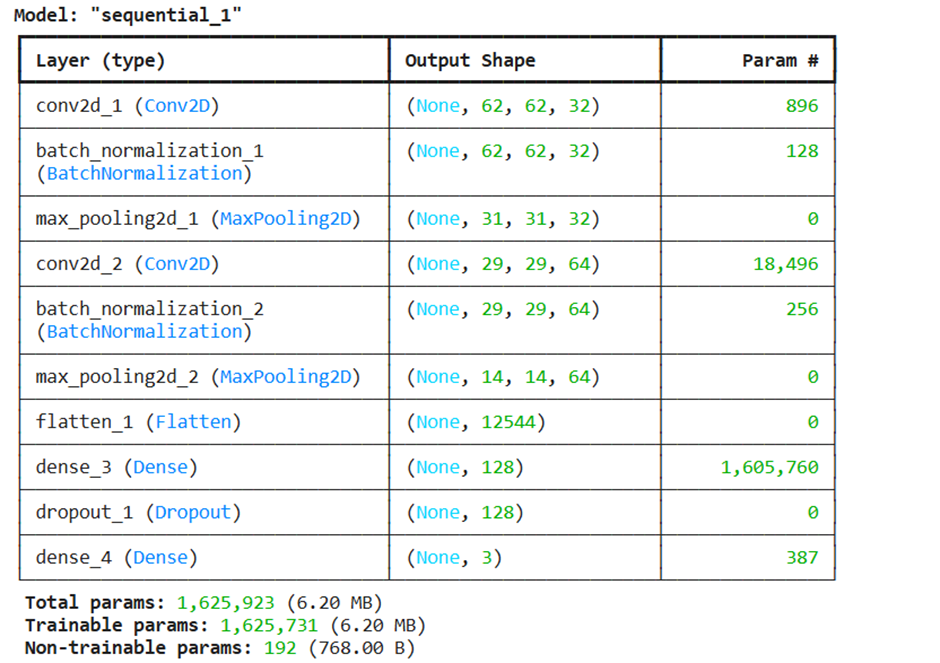 - لایه :Batch Normalization این لایه در این پروژه حیاتی است. چون تصاویر ورودی ممکن است بسیار متنوع باشند، این لایه خروجی لایههای قبلی را تراز میکند تا شبکه دچار سردرگمی نشود و آموزش سریعتر پیش برود.