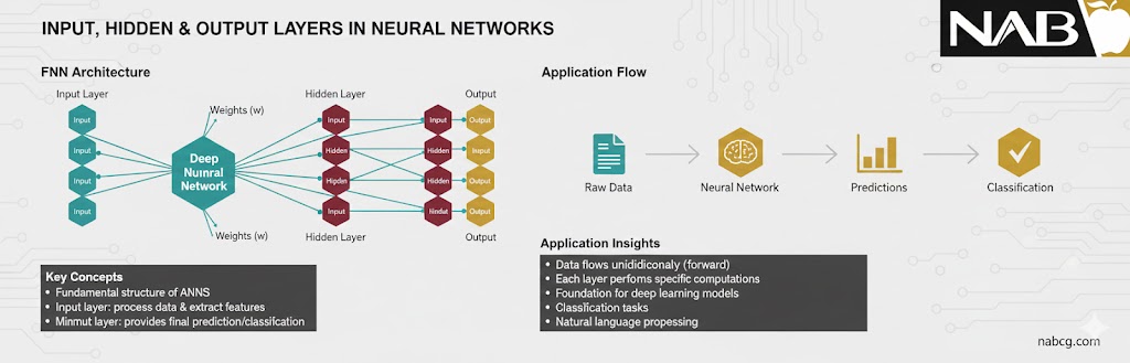 این لایه دروازهی ورود دادهها به دنیای شبکه عصبی است. نورونهای این لایه هیچ پردازش پیچیدهای انجام نمیدهند؛ آنها فقط ویژگیهای دادههای خام (مثل مقادیر پیکسلهای یک تصویر یا مشخصات مالی یک فرد) را دریافت کرده و به لایههای بعدی میفرستند.