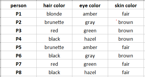 رنگ مو، رنگ چشم و رنگ پوست همه متغیرهای دسته بندی هستند. در زیر نشان داده شده است که چگونه مجموعه داده ما به نظر می رسد.