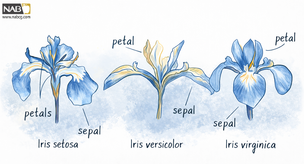 شکل 4: سه گونه متمایز از گلهای زنبق (iris)