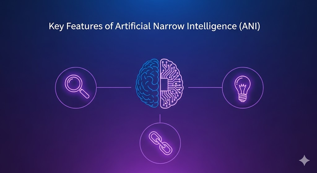 هوش مصنوعی محدود(ANI) چندین ویژگی کلیدی دارد که آن را از مفاهیم گسترده‌تر هوش مصنوعی مانند هوش مصنوعی عمومی یا حتی هوش مصنوعی فوق هوشمند (Artificial Superintelligence)  متمایز می‌کند.
