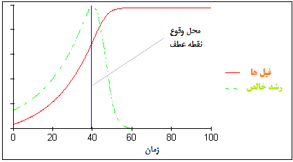 نقطه عطف در منحنی نقطه است که در آن سیستم با اینکه در حال رشد است اما سرعت از افزاینده به کاهنده تغییر میکند. نقطه عطف نقطه ای را نشان میدهد که یک انتقال در حلقه غالب وجود دارد. این نقطه جایی است که در آن حلقه منفی به جای حلقه مثبت غالب میشود و در نتیجه با افزایش یک واحد اضافی به متغیر حالت، نرخ نسبی خالص افزایش روندی کاهنده مییابد یا به عبارت دیگر آهنگ رشد کاهش مییابد.