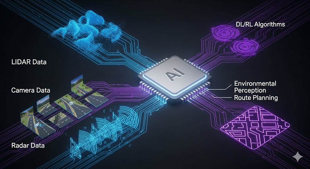 - مثال: سیستمهای رانندگی خودران (مانند Waymo یا Cruise) از ترکیبی از حسگرها (LIDAR، دوربین، رادار) و الگوریتمهای DL و RL برای ادراک محیط (Perception)، برنامهریزی مسیر و کنترل عملگرها استفاده میکنند. این سیستمها باید در کسری از ثانیه تصمیمات ایمن و منطقی بگیرند (NVIDIA Developer, 2021).