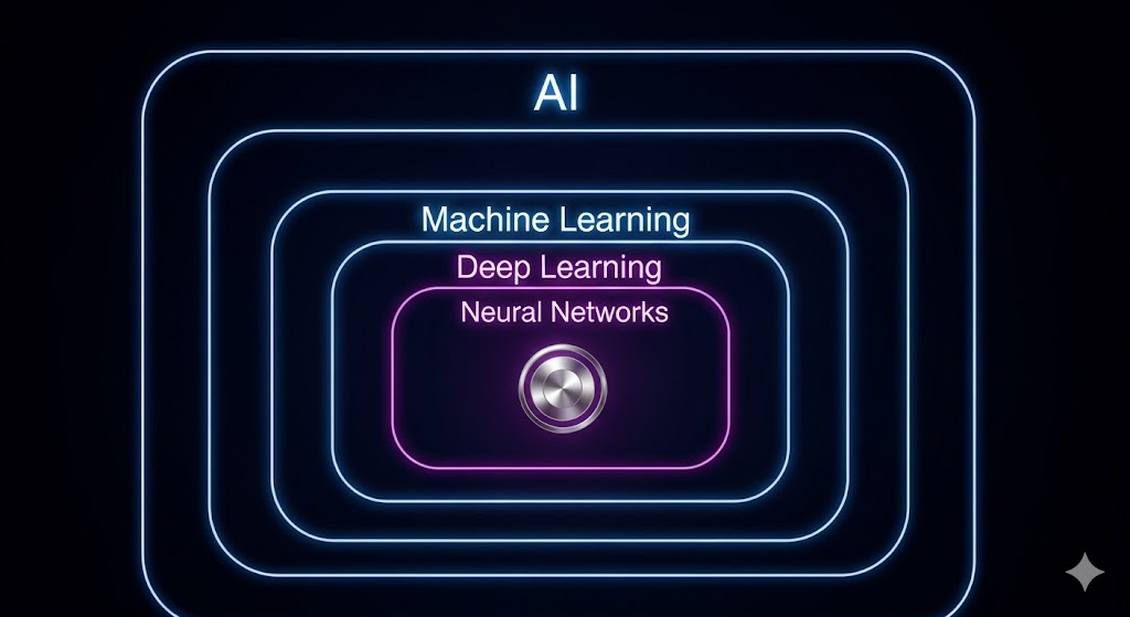 درک ارتباطات این حوزهها برای جلوگیری از سردرگمی تخصصی ضروری است AI: چتر مفهومی، ML ابزار اصلی آن و DL روش پیشرفتهی ML است.
