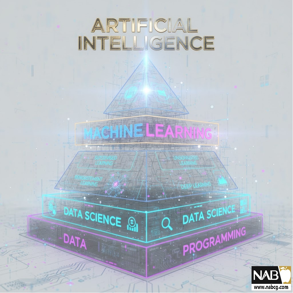 - هوش مصنوعی (AI): هدف نهایی — ساخت سیستمهای هوشمند.